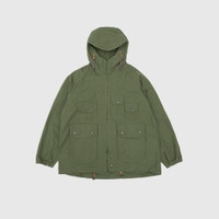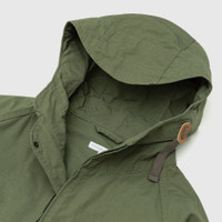 - 25S1D010-CT010 - Olive Cotton Ripstop - 100% Cotton - Front two-way zipper closure - Five front patch pockets with flap and snap button closure - Pull-over hood with adjustable drawstring - Pocket at the sleeve with zipper closure - One pocket at the back with zipper closure - Snap button at partially elasticated cuffs - Adjustable drawstring hem - Raglan sleeves - Made in USA