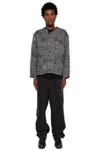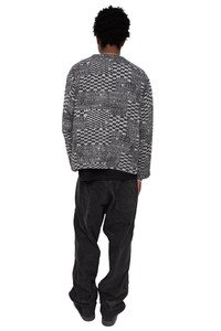 - A knit cardigan featuring a small open V-neck, buttons on the front, and patch pockets - Color: Black/White - 51% cotton, 27% polyester, 21% wool, 1% other - Made in USA - Model is 6'2 wearing a size M