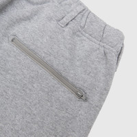 - 25F1B040-AF018 - Heather Grey 12oz CP Fleece - 94% Cotton, 6% Polyester - Front zipper and snap button closure - Elasticated waist with interior drawstring - Two front pockets with zipper closure - One back pocket with zipper closure - Adjustable drawstring cuffs - Pin tuck detailing - Relaxed fit - Made in USA