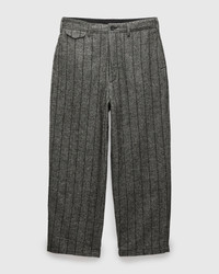 The Officer Pant is Engineered Garments’ wide-leg trouser, drawing inspiration from slant pocket trousers worn by U.S. Naval officers during World War II. This version is cut from a medium-weight striped herringbone twill, woven from an acrylic-wool blend with a brushed texture and soft hand. Designed with utility in mind, the pants feature slant front pockets, rear flap pockets, an adjustable drawstring waistband, and a concealed coin pocket. - Wide-leg fit - Medium-weight striped herringbone twill - Slant front pockets - Rear flap pockets - Drawstring waistband - Zipper fly - 20% wool 35% polyester 40% acrylic 5% other - Made in New York, USA