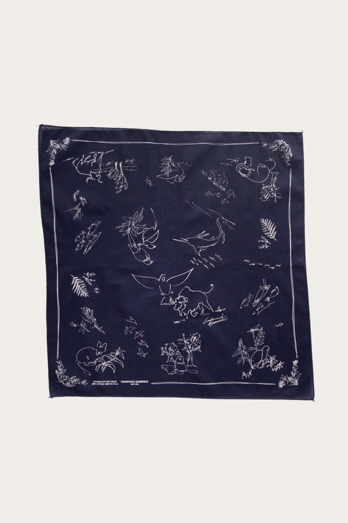 A beautiful printed bandana made from this season's unique animal print and is fully reversible. - 100% Cotton - Finished Edges - Reversible - Made in USA - Navy/Animal