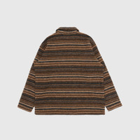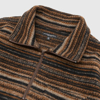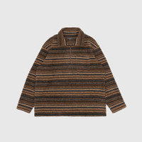 - 24F1B035 PS013 - A-Brown Fair Isle Stripe - 35% Wool, 65% Polyester - Front quarter zip closure - Front chest pocket - Stand up collar - Adjustable drawstring hem - Relaxed fit - Made in USA