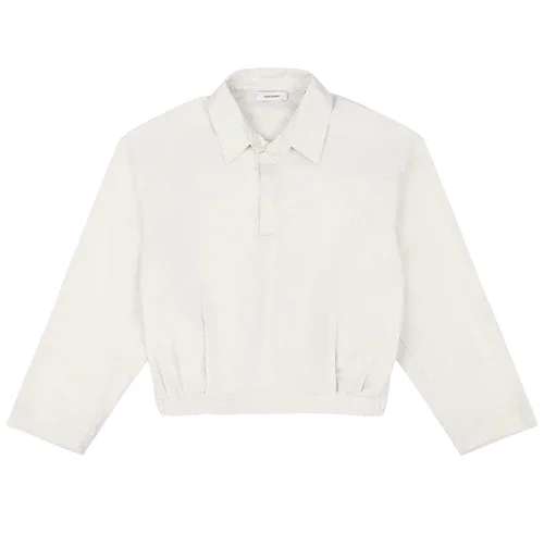 - 100% COTTON - PULL OVER - FRONT PLACKET + BUTTONS - ELASTICATED HEM - INSEAM SIDE POCKETS - PLEATING DETAILING