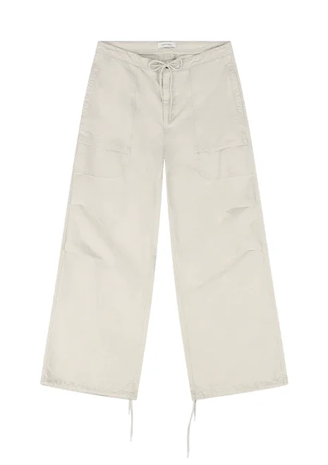- 100% organic cotton twill - 310 gsm - This item is garment dyed and enzyme washed which may result in slight variation in exact colour - Wide leg cargo pant - Knee pleat detailing - Drawstring waistband and hem - Unisex sizing
