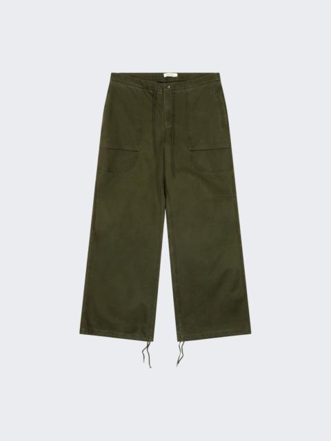Details - Organic cotton twill, wide leg cargo pants - Garment dyed and enzyme washed - slight variations in color may occur - Knee pleat detailing - Drawstring waistband and hem - Unisex sizing - Material: 100% Cotton, 310gsm Vendor Color Code: Brand Style: ESSS26PA05012 Designer/Brand: ENTIRE STUDIOS