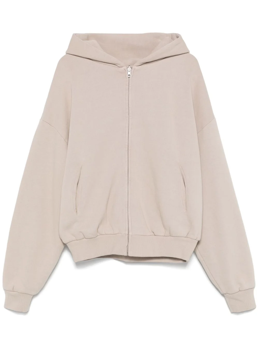 Thermal hoodie Highlights - Light grey - Organic cotton - Jersey texture - Front zip fastening - Classic hood - Drop shoulder - Long sleeves - Ribbed cuffs - Two side inset pockets - Ribbed hem - Full lining - When buying this unisex item, keep in mind that it is graded in standard men's sizing. Made in United Kingdom Composition Organic Cotton 100% SIZE & FIT Model measurements Height 5 ft 11 in(1.8 m) Bust/Chest 31.49 in(80 cm) Hips 36.61 in(93 cm) Waist 24.4 in(62 cm) FittingInformation This piece is unisex – if you usually select men's sizing expect a loose fit throughout; if you usually select women's sizes, expect an oversized fit The ribbed hem offers a close, comfortable fit Made from a midweight non-stretch fabric, this piece offers minimal elasticity when worn