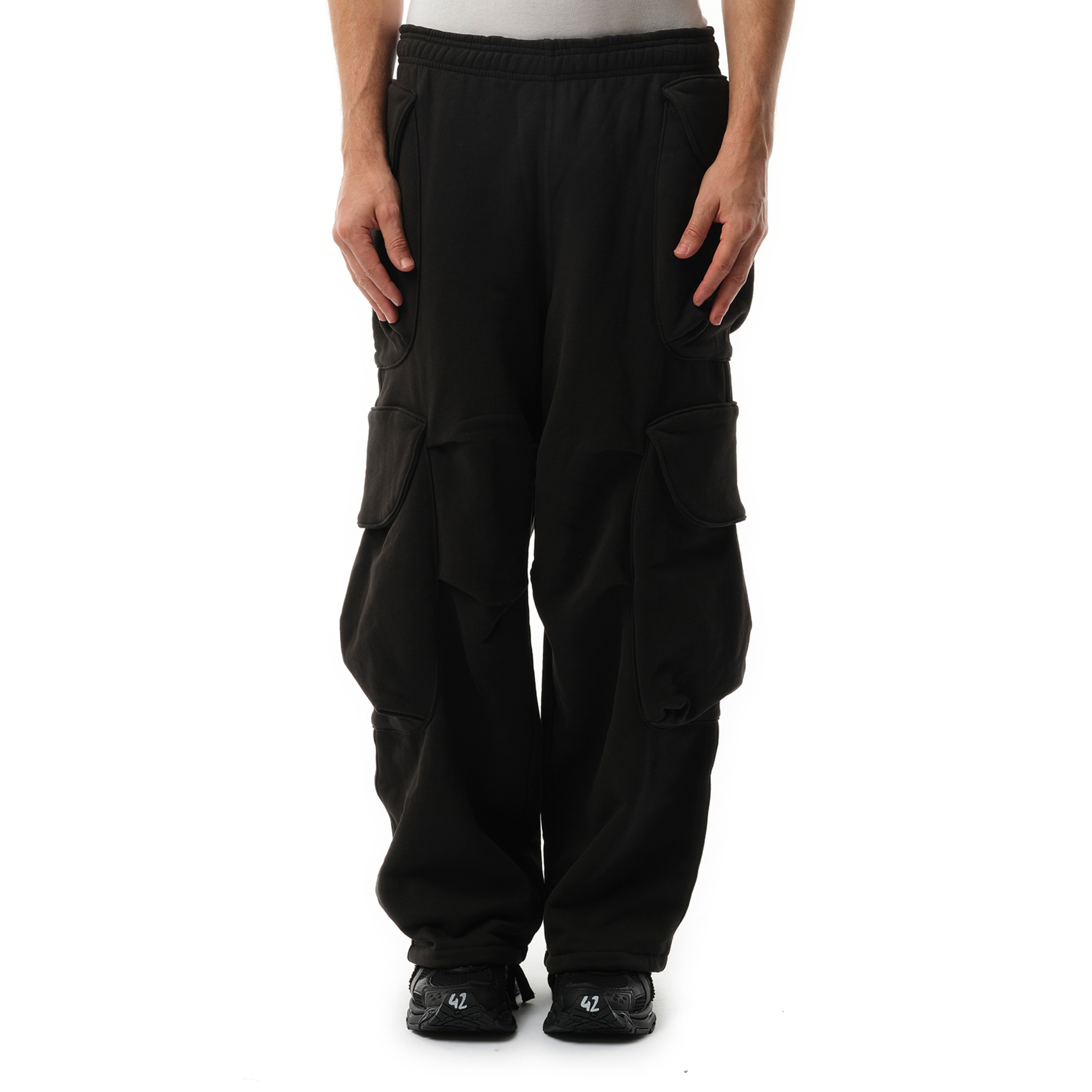 Stay comfortable and stylish with our Heavy Gocard Sweatpants in Soot. Made with high-quality materials, these sweatpants provide durability and warmth. Perfect for everyday wear, you'll appreciate the ease and comfort these sweatpants offer. - Composition: 100% Cotton - Elasticated waistband - Internal drawstring - Four cargo pockets - Drawstring hem - Made in China Model is 192 cm and wears size M SKU: ES2379SO