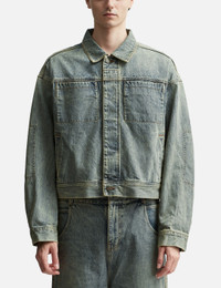 - Entire Studios - Gem Denim Jacket - Made with Japanese selvedge denim - Concealed placket - Two chest pockets; two front pockets - Short hem - Color: Surface Wave - Material: 100% Cotton - See more Jackets and Clothing SIZING - Model wears size M - Model measures: Height 190cm, Chest 36"/94cm, Waist 29”/74cm, Hip 37"/94cm
