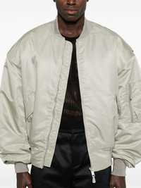 Broad bomber jacket Highlights - Ash grey - Gabardine weave - Padded design - Ribbed trim - Front zip fastening - Baseball collar - Drop shoulder - Shoulder pads - Long sleeves - Sleeve zip pocket - Sleeve patch pocket - Two front flap pockets - Dart detailing - Quilted lining - Straight hem - When buying this unisex item, keep in mind that it is graded in standard men's sizing. Imported Composition Outer: Nylon 100% Lining: Polyester 100% SIZE & FIT Model measurements Height 5 ft 11 in(1.8 m) Bust/Chest 33.07 in(84 cm) Hips 37.4 in(95 cm) Waist 25.19 in(64 cm) Measurement BUST 58.26 in(148 cm) FittingInformation This piece is unisex – if you usually select men's sizing expect a loose fit throughout; if you usually select women's sizes, expect an oversized fit The ribbed hem offers a close, comfortable fit Made from a padded non-stretch fabric, giving it no natural elasticity