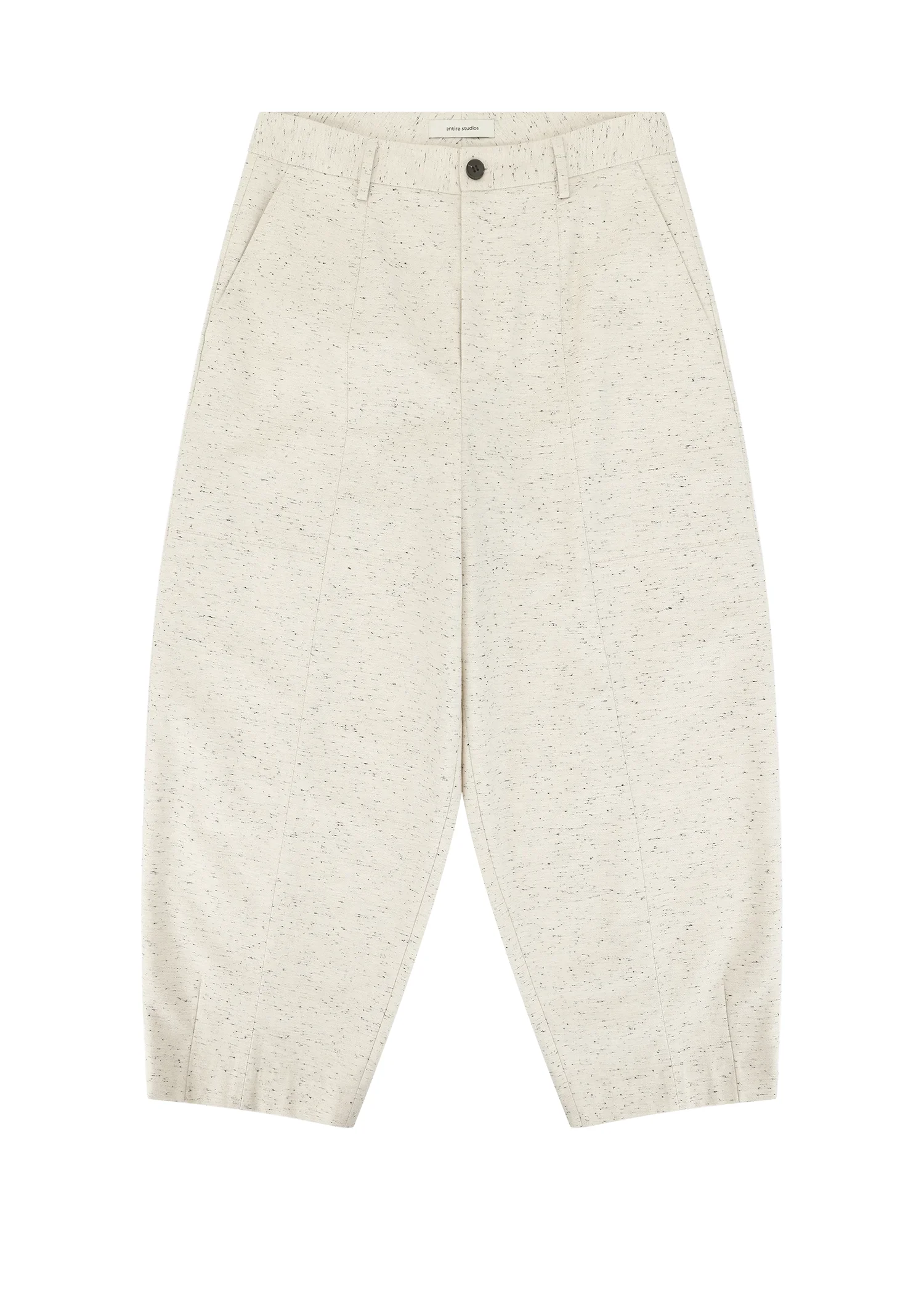 - 99% COTTON, 1% POLYESTER - FRONT AND BACK SPLIT PANEL DETAIL - SIDE INSEAM POCKETS - CARROT LEG SHAPE - YKK METAL FLY ZIPPER