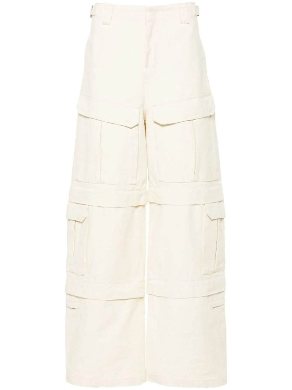 Carvas trousers Highlights - Ivory white - Cotton - Canvas - Concealed fly and button fastening - Belt loops - Adjustable waist strap - Two side welt pockets - Dart detailing - Multiple cargo pockets - Detachable legs - Two rear flap pockets - Wide leg - When buying this unisex item, keep in mind that it is graded in standard men's sizing. Imported Composition Cotton 100% SIZE & FIT Model measurements Height 5 ft 10 in(1.78 m) Bust/Chest 31.49 in(80 cm) Hips 37 in(94 cm) Waist 23.62 in(60 cm) FittingInformation This piece is unisex and is designed with a wide-leg, whether you usually select women's or men's sizes Made from a midweight non-stretch fabric