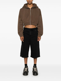 cropped hoodie Highlights - Chocolate brown - Organic cotton - Jersey texture - Stand-up collar - Classic hood - Front zip fastening - Drop shoulder - Long sleeves - Ribbed cuffs and hem - Fleece lining - Cropped - When buying this unisex item, keep in mind that it is graded in standard men's sizing. Imported Composition Organic Cotton 100% SIZE & FIT Model measurements Height 5 ft 10 in(1.78 m) Bust/Chest 31.49 in(80 cm) Hips 37 in(94 cm) Waist 23.62 in(60 cm) FittingInformation This unisex piece is designed for a relaxed fit whether you usually select women's or men's sizes The ribbed hem offers a close, comfortable fit Made from a midweight non-stretch fabric, this piece offers minimal elasticity when worn Measurement CHEST 42.51 in(108 cm) SLEEVE LENGTH 18.89 in(48 cm) LENGTH 14.96 in(38 cm) Shoulder Width 28.34 in(72 cm) Washing instructions Machine Wash