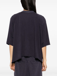 heavy dart tee Highlights - Ink purple - Organic cotton - Crew neck - Drop shoulder - Short raglan sleeves - Dart detailing - Raw-cut hem Imported Composition Organic Cotton 100% SIZE & FIT Model measurements Height 6 ft 1 in(1.85 m) Bust/Chest 35.43 in(90 cm) Hips 36.22 in(92 cm) Waist 28.74 in(73 cm) FittingInformation Designed to be unstructured, offering a loose fit throughout Made from a midweight non-stretch fabric, this piece offers minimal elasticity when worn Washing instructions Machine Wash