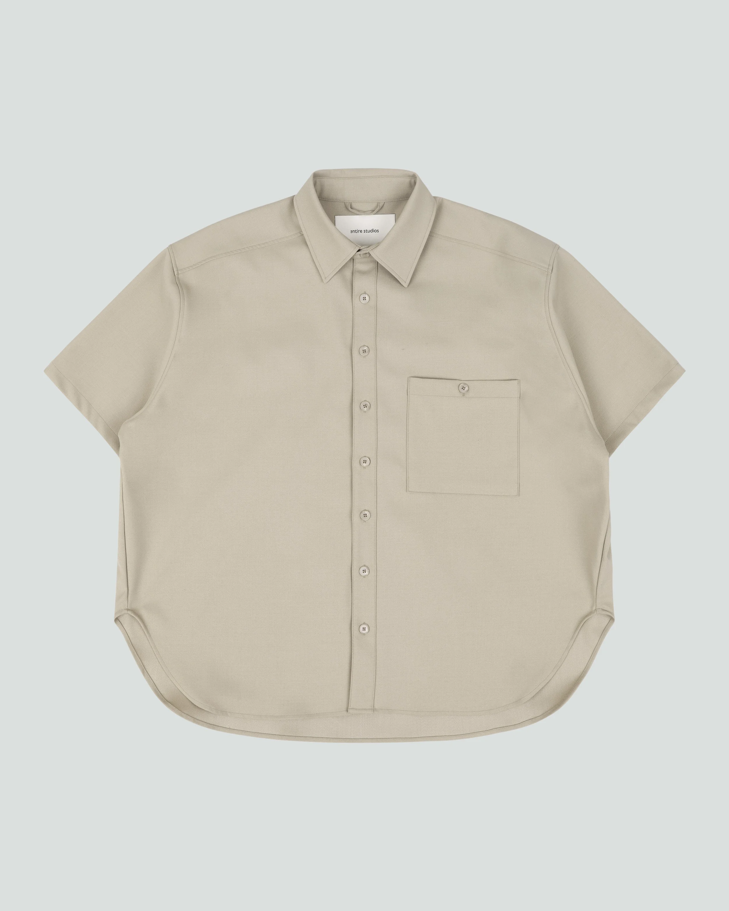 - WOOL SUITING BLEND - CF BUTTON CLOSURE - OVERSIZED FIT - SHORT SLEEVE - SINGLE CHEST PATCH POCKET