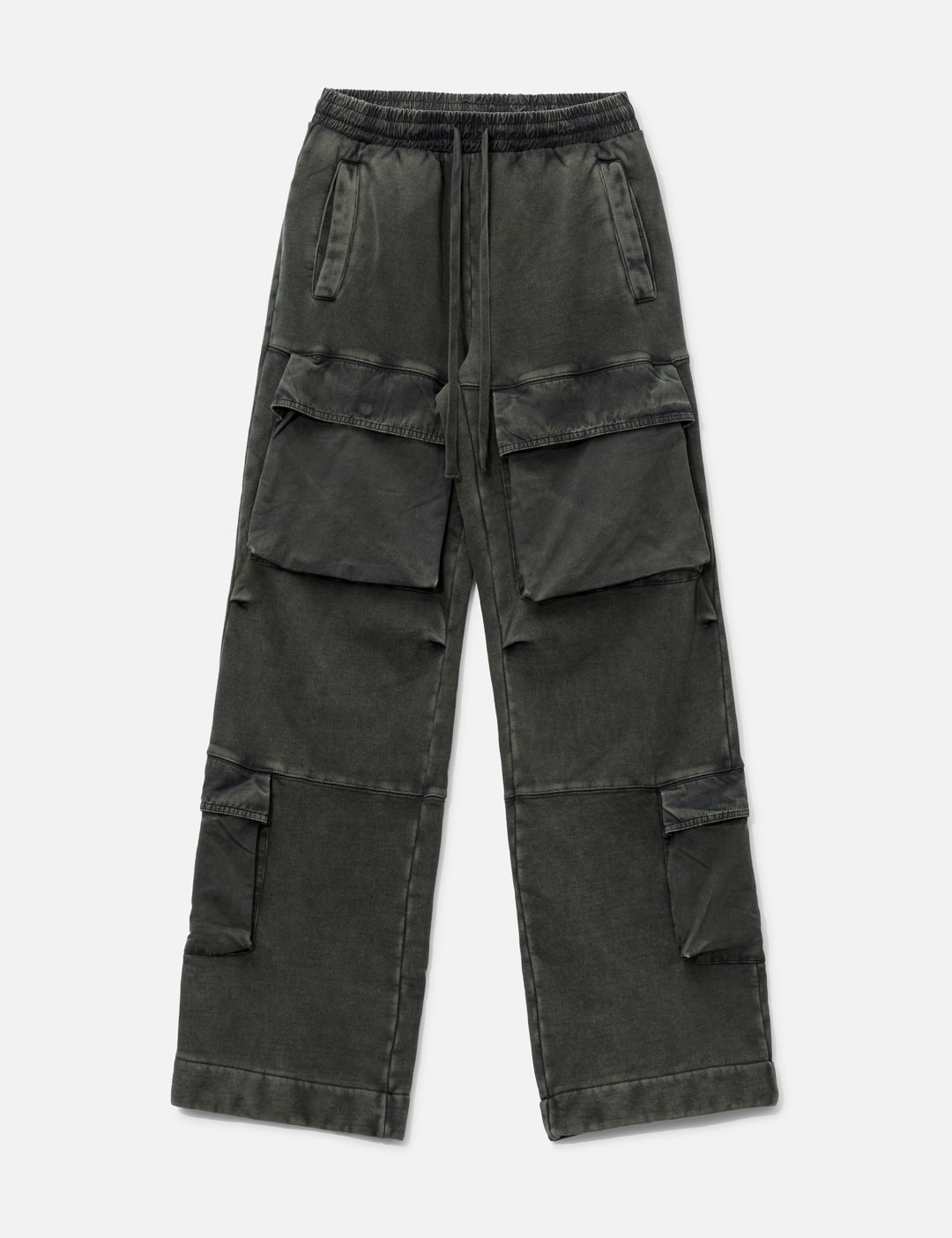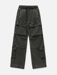 - Entire Studios - Utility Sweats - Made with organic cotton - Elasticated waistband with drawcord - Two side pockets; two rear pockets - 4 cargo pockets - Panelled details - Heavy enzyme washed fabric - Due to the washing, colors may vary for each piece - Color: Washed Black - Material: 100% Cotton - See more Pants and Clothing SIZING - Model wears size M - Model measures: Height 189cm, Chest 31.5"/80cm, Waist 27”/69cm, Hip 34.3’’/87cm