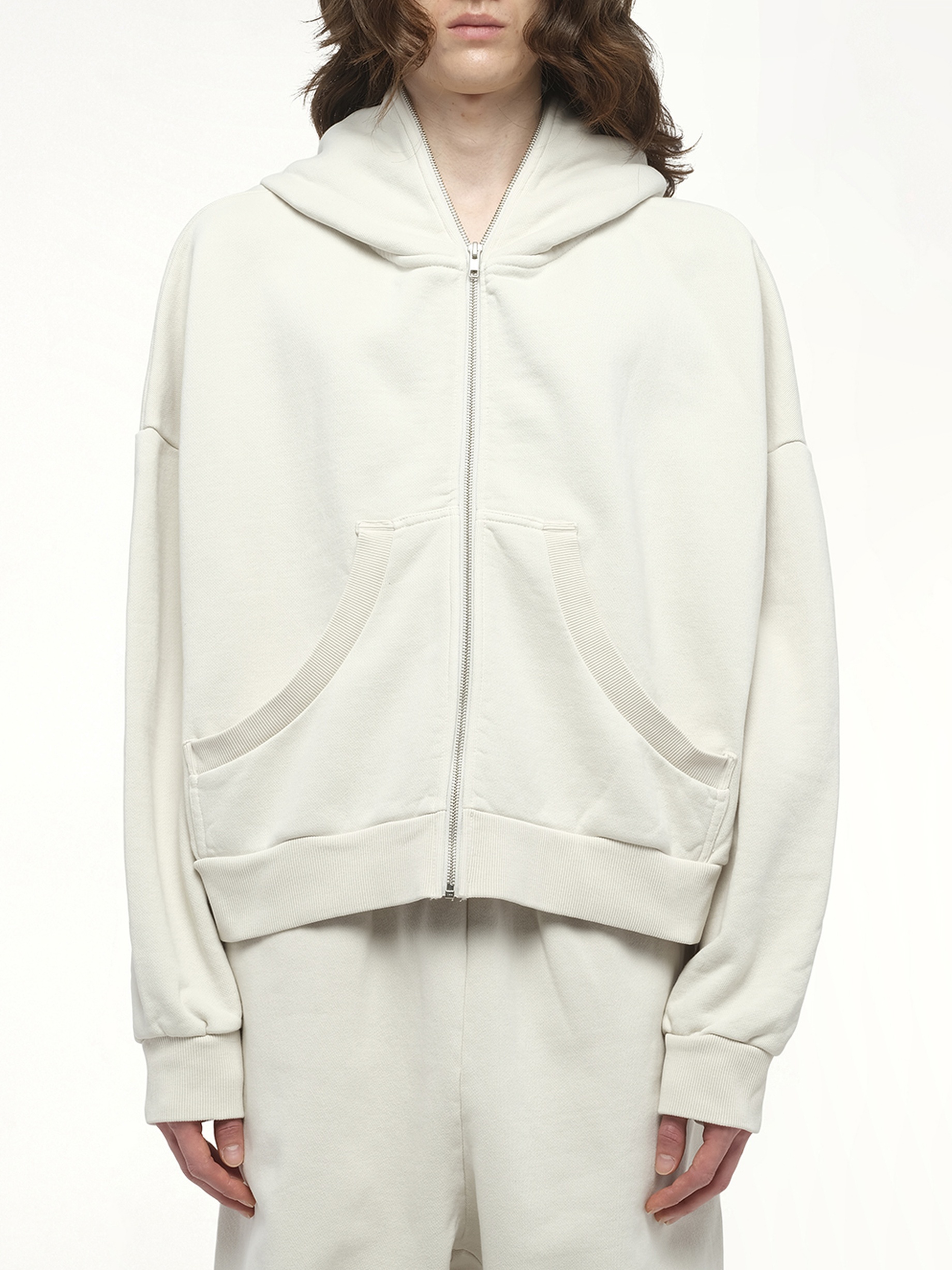 ENTIRE STUDIOS's Eternal Zip Hoodie in Rice is a versatile and stylish addition to your wardrobe. This hoodie combines comfort with a modern aesthetic, making it perfect for any casual occasion. - Composition: 100% organic cotton fleece - Relaxed fit for ultimate comfort - Full zip closure for easy layering - Adjustable drawstring hood - Ribbed cuffs and hem for a snug fit - Front pockets for added convenience - Made in China Model is 187 cm and wears size M SKU: ES2202RI