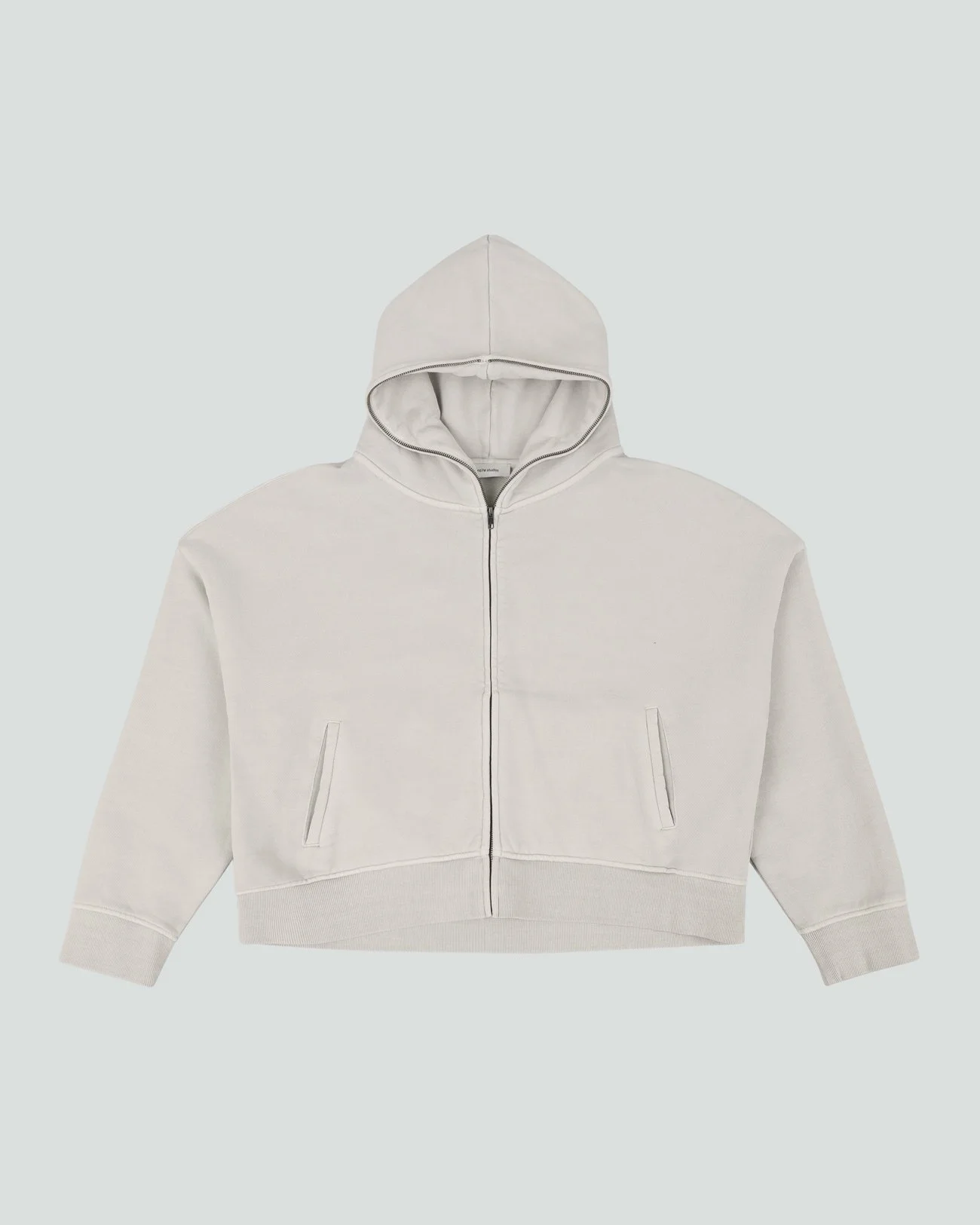 - 100% organic cotton brushed back fleece - 510 gsm - This item is garment dyed and enzyme washed which may result in slight variation in exact colour - Waist pockets - YKK metal front zip to top of hood - Unisex sizing