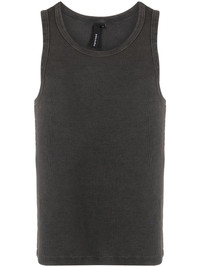fine-ribbed tank top Highlights - Dark grey - Stretch organic cotton - Fine ribbed - Scoop neck - Sleeveless - Straight hem Imported Composition Organic Cotton 95%, Elastane 5% SIZE & FIT Model measurements Height 6 ft 2 in(1.89 m) Bust/Chest 37.79 in(96 cm) Hips 37 in(94 cm) Waist 29.92 in(76 cm) Measurement CHEST 23.62 in(60 cm) LENGTH 23.22 in(59 cm) FittingInformation Designed for a close fit throughout Made from a midweight stretch fabric, this piece offers elasticity and flexibility when worn This piece fits true to size – take your usual size