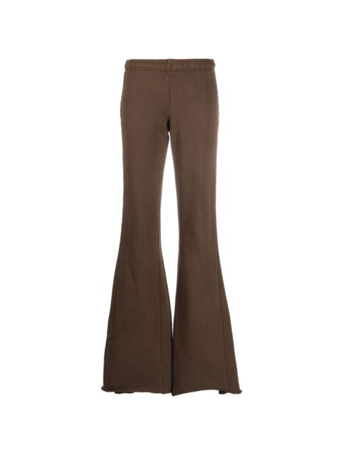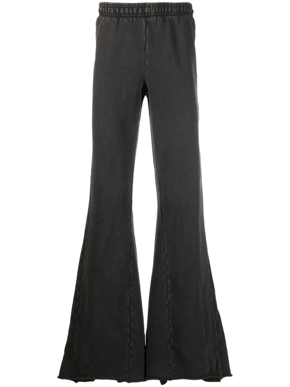 flared cotton track pants Highlights - Black - Organic cotton - Washed - Rolled trim - Elasticated waistband - Flared - Two side inset pockets - Rear welt pocket - Floor-length - When buying this unisex item, keep in mind that it is graded in standard men's sizing. Imported Composition Organic Cotton 100% SIZE & FIT Model measurements Height 6 ft 0 in(1.84 m) Bust/Chest 35.82 in(91 cm) Hips 37 in(94 cm) Waist 28.34 in(72 cm) FittingInformation This piece is unisex and is designed for a close fit over the leg whether you usually select women's or men's sizes Adjust this piece’s waistband to your preference using the drawstring Made from a midweight non-stretch fabric, this piece offers minimal elasticity when worn Measurement INSIDE LEG 37 in(94 cm) HIPS 46.45 in(118 cm) WAIST 32.28 in(82 cm) Washing instructions Machine Wash