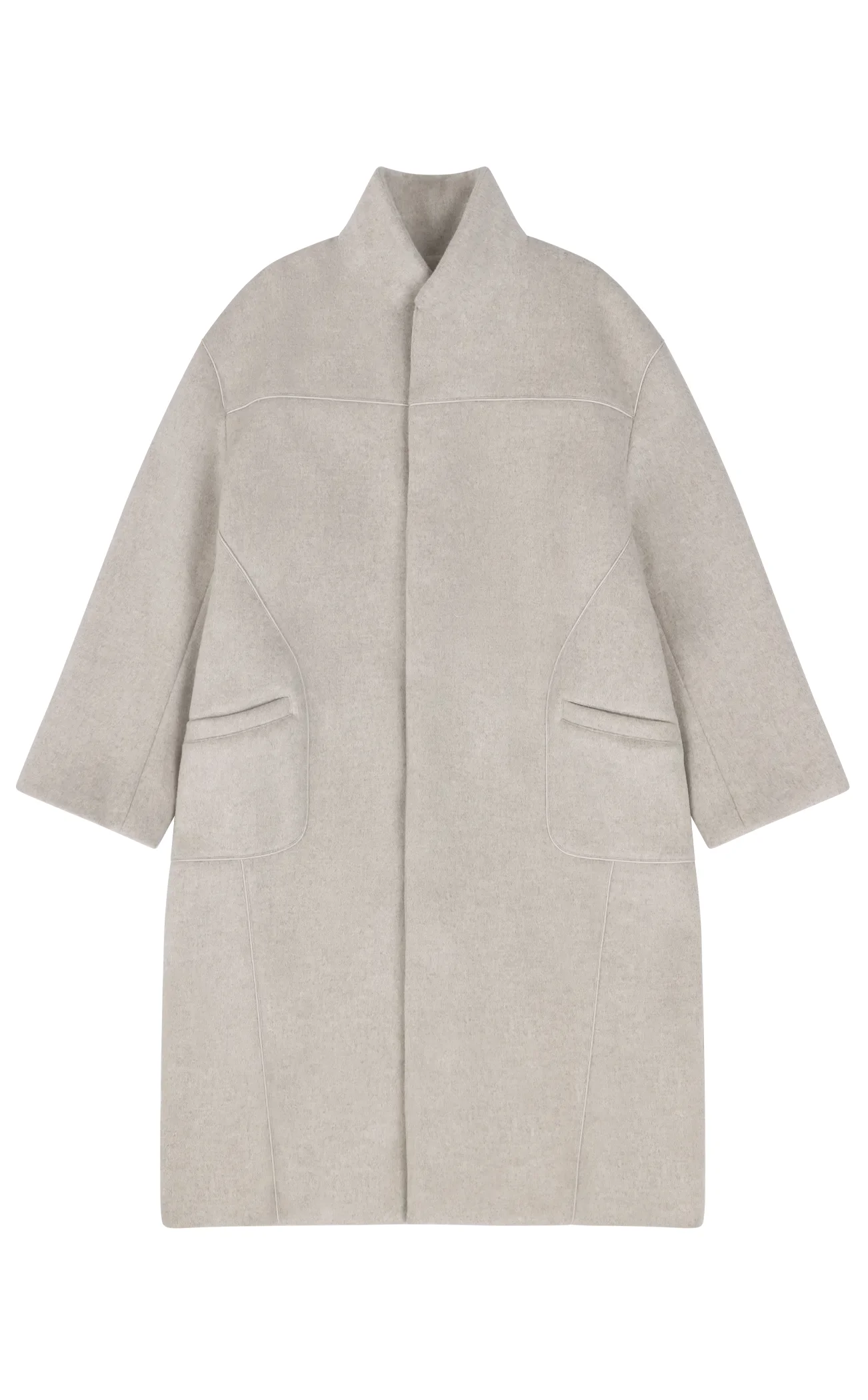 - 100% WOOL - SINGLE BREASTED - PIPING DETAILING - CONCEALED BUTTON CLOSURE - HIGH NECK - WELT POCKETS - BACK VENT - FULLY LINED