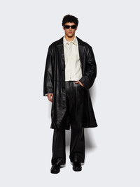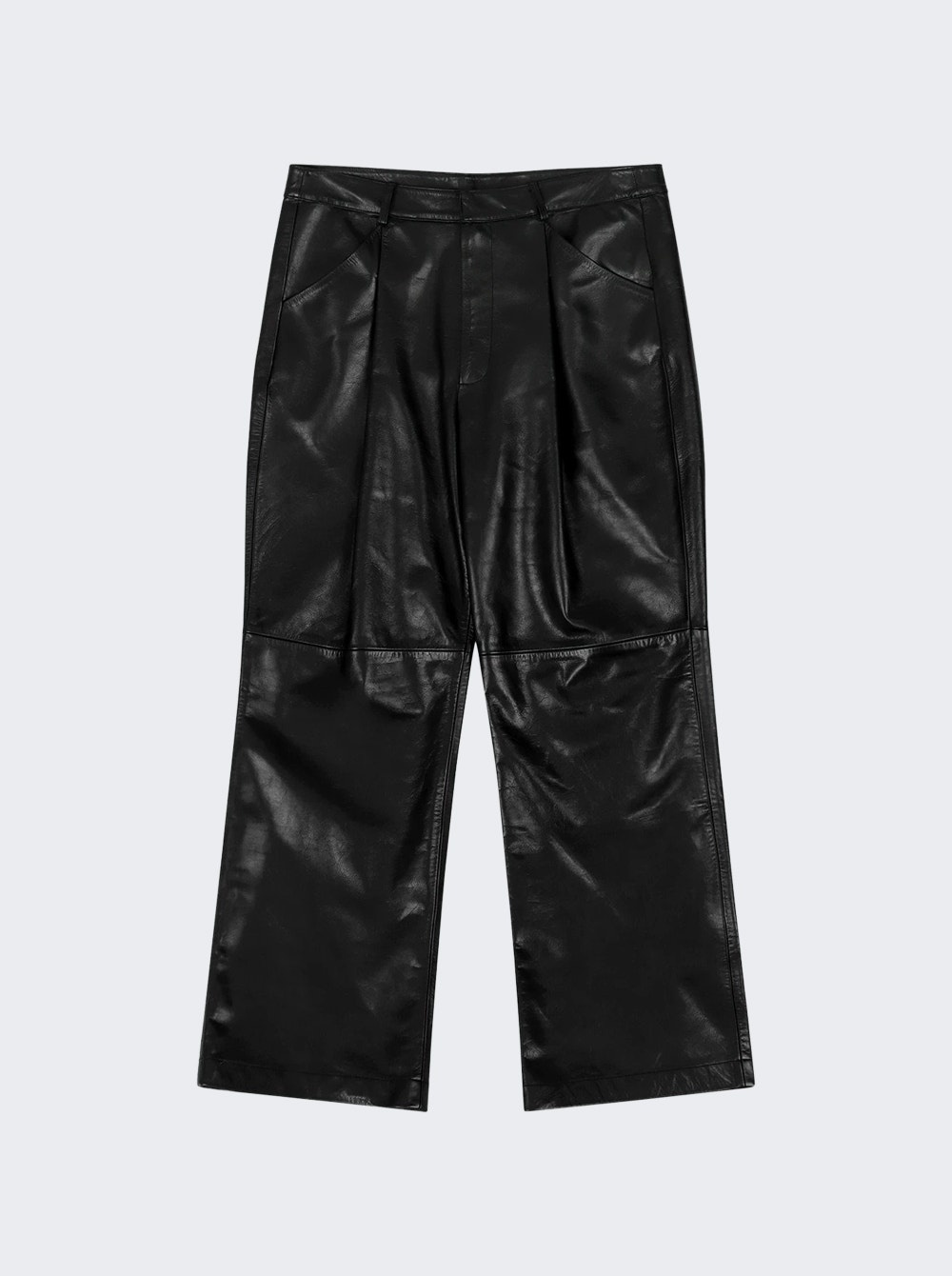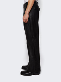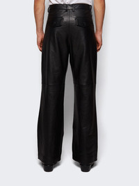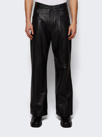 Details - Regular fit - Straight leg - Side seam pockets - Rear flap pockets - Belt loops - Pleated design - Care according to label - Material: 100% Leather - Model is 6'1"/185cm and is wearing a size M Brand Style: ES2668BL Designer/Brand: ENTIRE STUDIOS