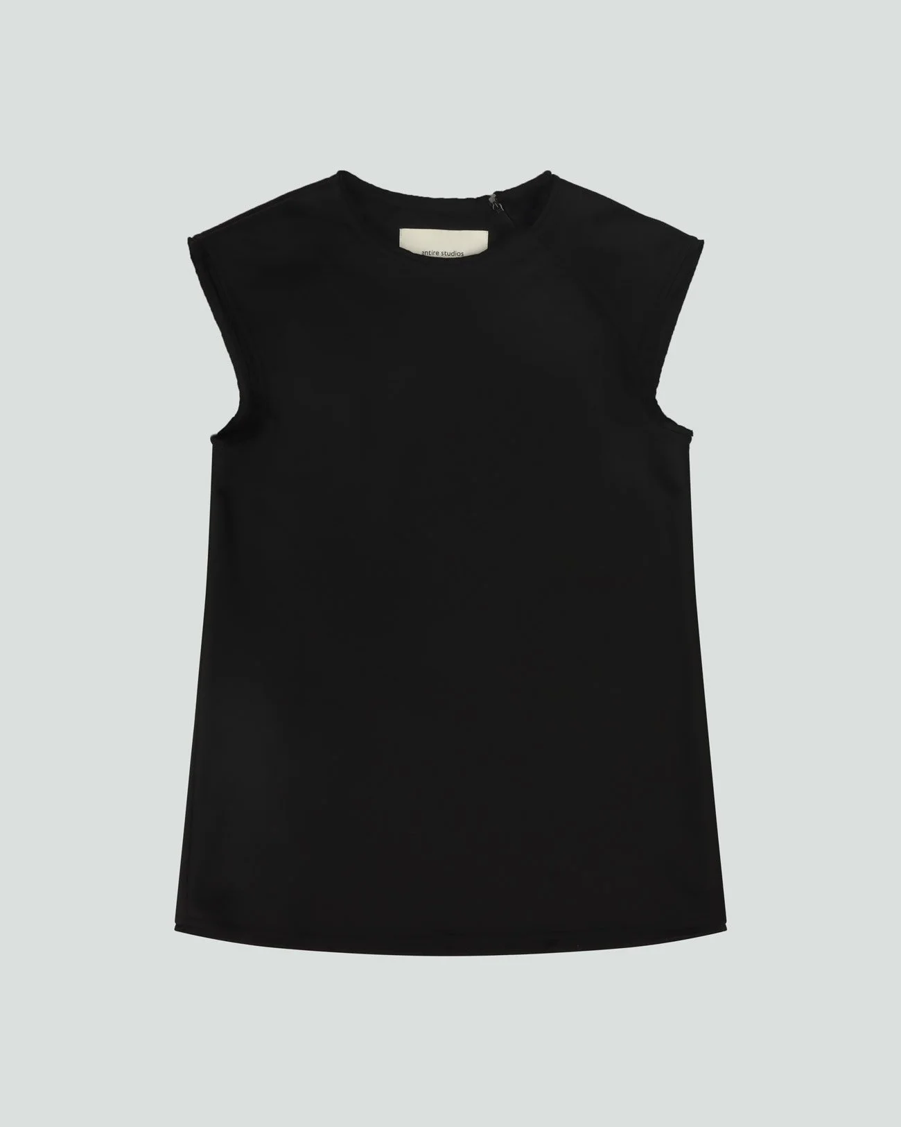- WOOL SUITING BLEND - SLEEVELESS TANK - RAW DEATILING - SHOULDER SEAM FORWARD - YKK INVISIBLE ZIPPER - SLIM FIT - LONG LENGTH