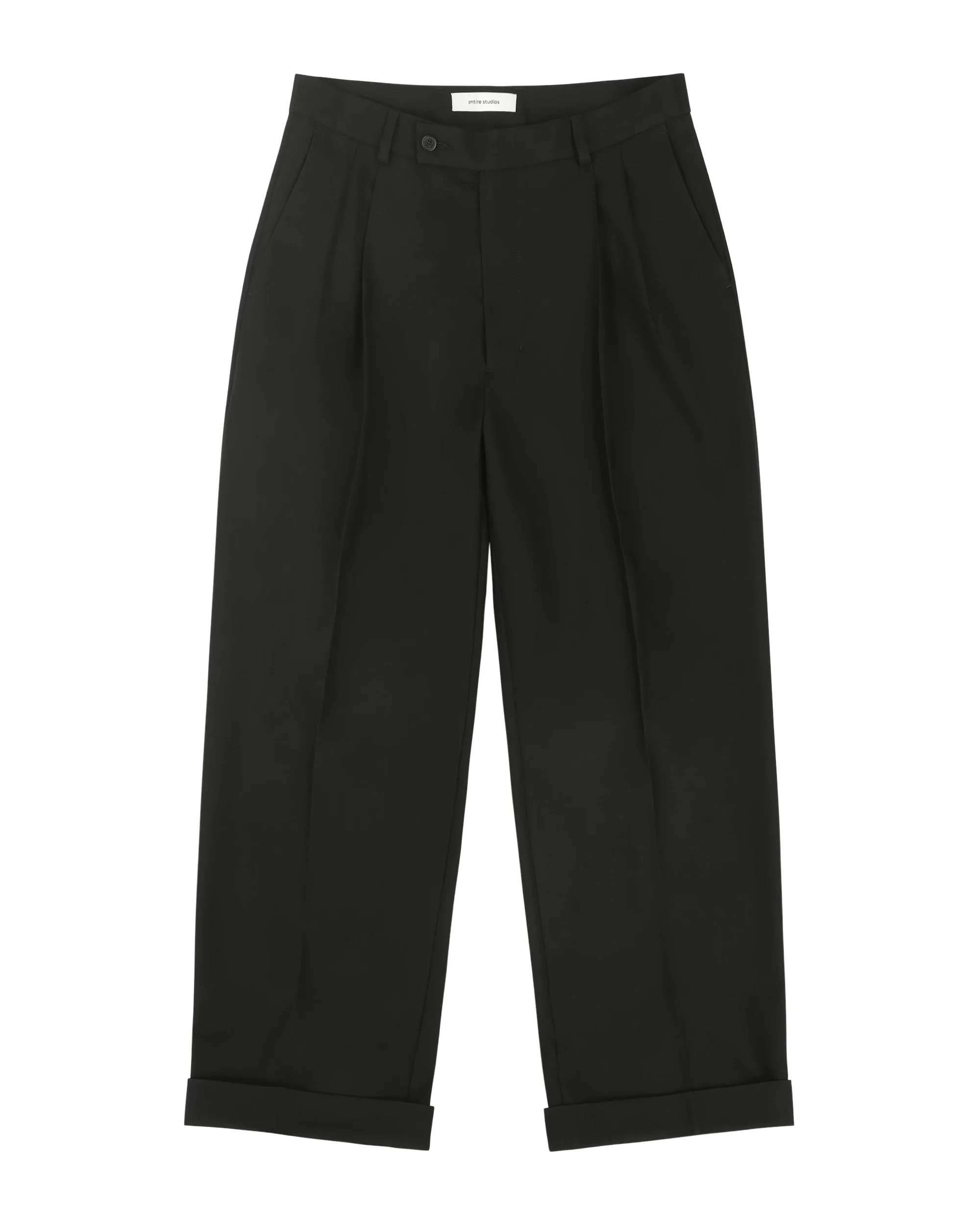 - 70% WOOL 30% POLYESTER - MEDIUM RELAXED FIT - FRONT PLEATING - CUFFED HEMS - YKK METAL FLY ZIPPER