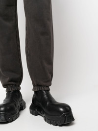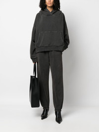 organic cotton track pants Highlights - Washed black - Organic cotton - Elasticated waistband - Two side slit pockets - Rear patch pocket - Tapered leg - Elasticated ankles - This item is made from at least 50% organic materials. - Learn more about what makes a product conscious on our conscious criteria page Imported Composition Organic Cotton 100% SIZE & FIT Model measurements Height 5 ft 10 in(1.78 m) Bust/Chest 32.28 in(82 cm) Hips 35.43 in(90 cm) Waist 24.8 in(63 cm) FittingInformation This piece is unisex and is designed for a tapered-leg, whether you usually select women's or men's sizes Adjust this piece’s waistband to your preference using the drawstring Made from a midweight stretch fabric, this piece offers elasticity and flexibility when worn