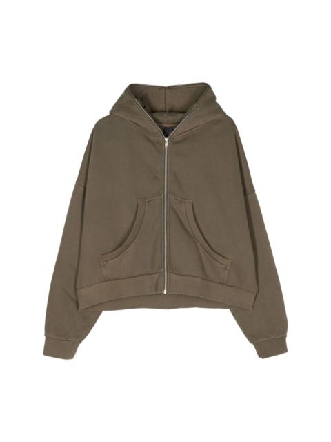 organic-cotton zipped hoodie Highlights - Brown - Organic cotton - Jersey texture - Classic hood - Drop shoulder - Long sleeves - Ribbed cuffs and hem - Two front pouch pockets - Front zip fastening - Straight hem - Fleece lining - When buying this unisex item, keep in mind that it is graded in standard men's sizing. Imported Composition Organic Cotton 100% SIZE & FIT Model measurements Height 5 ft 11 in(1.8 m) Bust/Chest 33.07 in(84 cm) Hips 37 in(94 cm) Waist 25.59 in(65 cm) Measurement CHEST 62.99 in(160 cm) SLEEVE LENGTH 37.4 in(95 cm) LENGTH 24.4 in(62 cm) Shoulder Width 30.7 in(78 cm) FittingInformation This piece is unisex – if you usually select men's sizing expect a loose fit throughout; if you usually select women's sizes, expect an oversized fit Made from a midweight non-stretch fabric, this piece offers minimal elasticity when worn Washing instructions Machine Wash