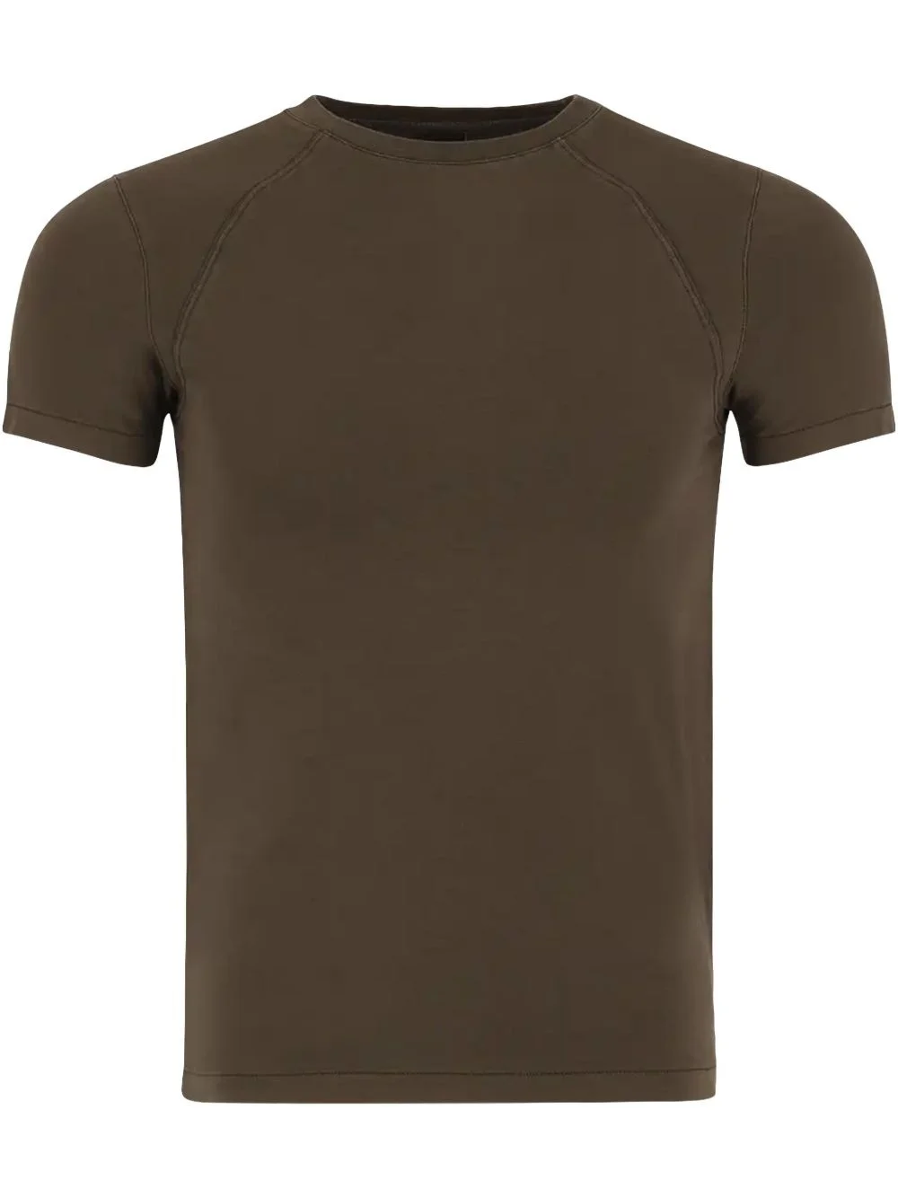 raglan-sleeve T-shirt Highlights - Olive brown - Round neck - Short sleeves - Fitted silhouette - Raglan cut - Seamless shoulders - Lightweight design Imported Composition Organic Cotton 95%, Elastane 5% Washing instructions Read Manufacturer Guidelines
