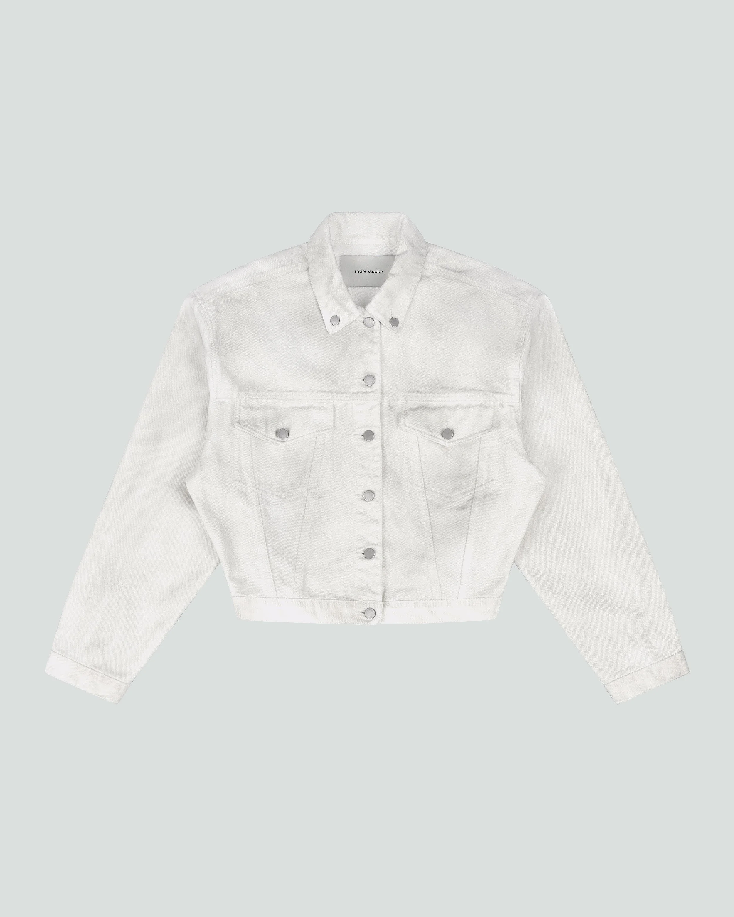 - 100% COTTON DENIM - DIRTY SPRAY - CHEST FLAP POCKETS - BRANDED HARDWARE - FITTED WAIST WITH ADJUSTERS - EXAGGERATED SHOULDERS