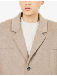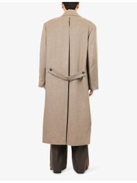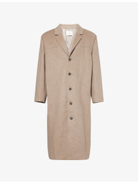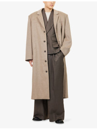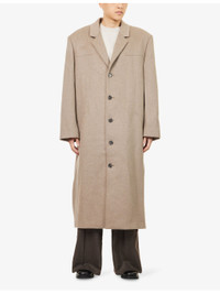 PRODUCT DETAILS - ENTIRE STUDIOS wool blend coat - 50% wool, 50% polyester - Exposed button fastening at front - Notched lapel, long sleeves, darted, two internal slip pockets, pleated vent at back, fully lined - Dry clean only - Size medium: length 53.1in / 135cm, chest 48in / 122cm - Model is 6ft 2in/1.88m and wears a size medium - Lightweight, non-stretch Ref: R04479890