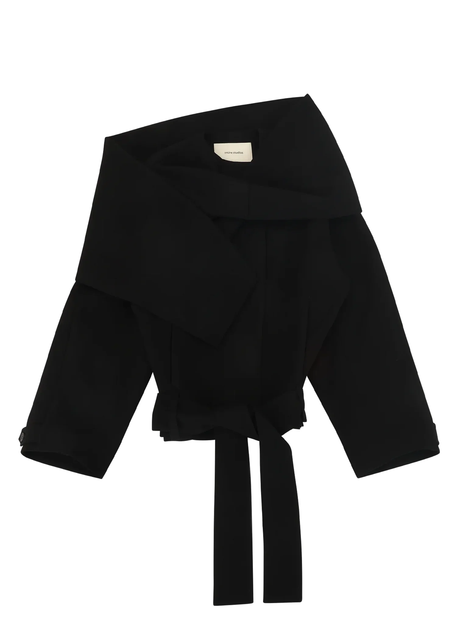 - 100% POLYESTER - DRAPED SCARF DETAIL - CONCEALED PRESS SNAP - FULLY LINED - YKK METAL ZIPPER - RELAX FIT - ADJUSTABLE WAIST BELT - ADJUSTABLE SLEEVE CUFFS