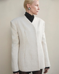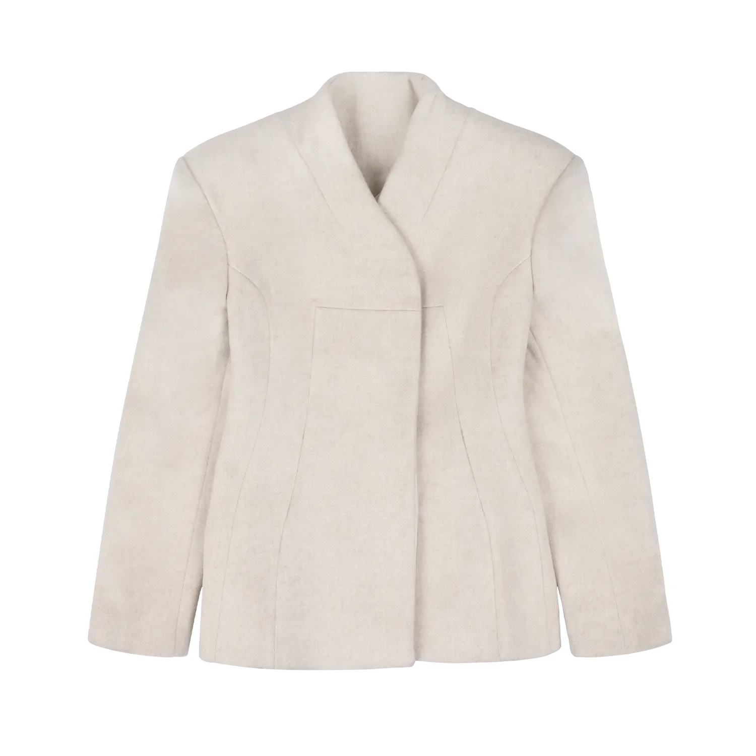 - 100% WOOL - SHAPING DARTS - FORM FITTED - FULLY LINED - SHOULDER PADS - CONCEALED BUTTON CLOSURE