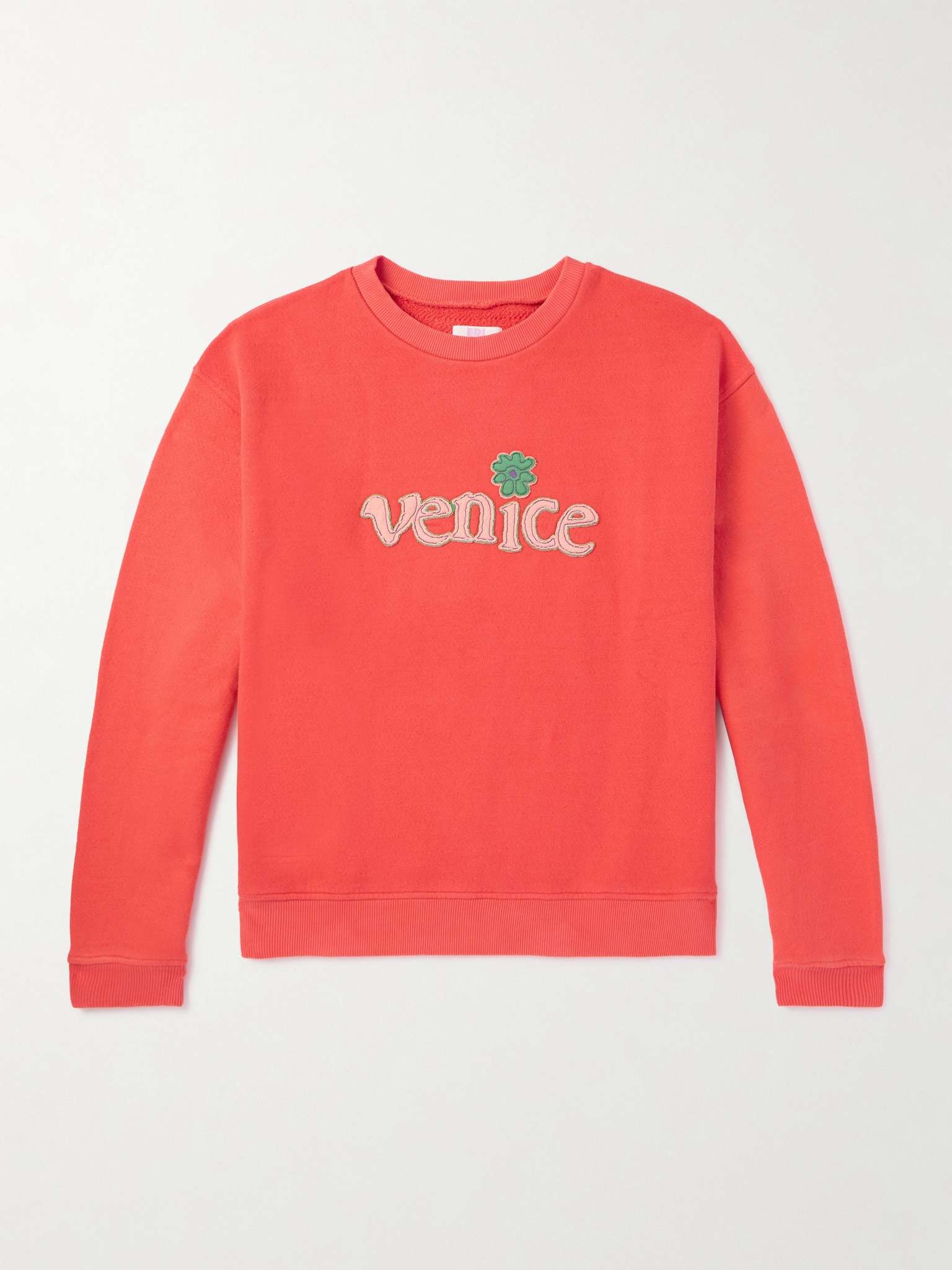 ERL's sweatshirt pays tribute to designer Eli Russell Linnetz's hometown of Venice Beach. It's made from loopback cotton-jersey and appliquéd with a reference at the front and the phrase 'be nice' at the back. Dropped shoulders enhance the slightly loose fit. Size & Fit - Fits true to size. Take your normal size - Designed for a slightly loose fit - Mid-weight, stretchy fabric - Model is shown wearing a M - Model measures: chest 38"/ 96cm, height 6'0"/ 183cm Details & Care - Red loopback cotton-jersey - 100% cotton - Machine wash