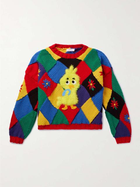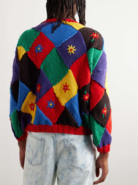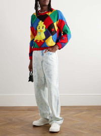 Established by photographer and designer Eli Russell Linnetz, ERL is inspired by the laid-back attitude of Venice Beach. This sweater is knitted from patches of colourful virgin wool-blend and appliquéd with a furry cartoon chick. Flowers are embroidered throughout, contrasting whichever diamond motif it's displayed on. Play up the retro look with a pair of faded jeans. Small to size. See Size & Fit notes. Size & Fit - Fits very small to size. Take two sizes larger than normal - Designed for a boxy fit - Particularly short in the sleeves - Mid-weight knit - Model is shown wearing a L - Model measures: chest 36"/ 92cm, height 6'1"/ 185cm Details & Care - Multicoloured virgin wool-blend - 96% virgin wool, 3% recycled polyamide, 1% nylon - Hand wash - This item has been imported