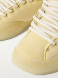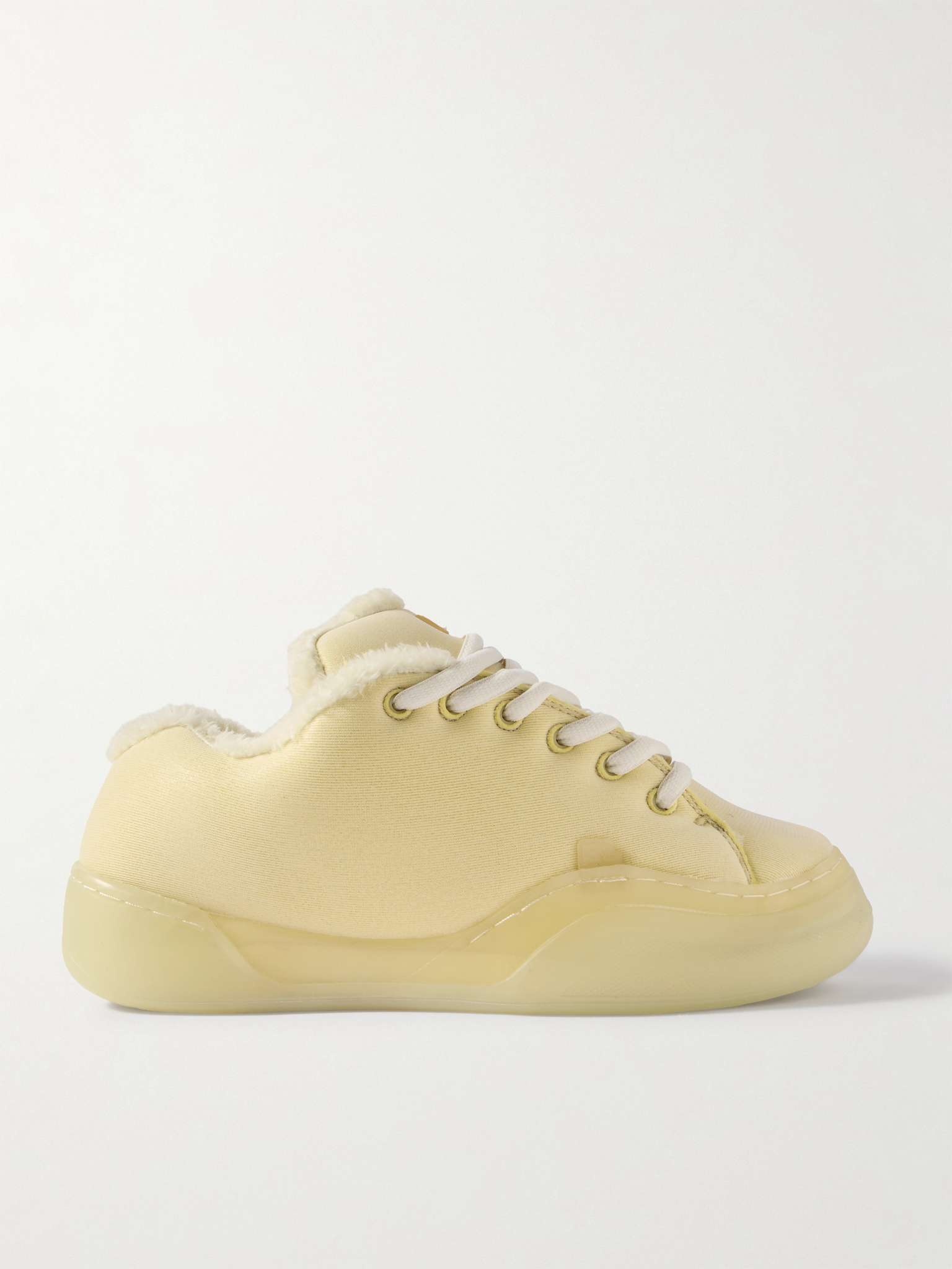 Designed with exaggerated proportions and clear rubber soles, ERL's sneakers are a throwback to '90s skate styles. They're made from jersey and lined in soft faux shearling. Complete the look with a flannel shirt and distressed jeans. Size & Fit - Fits true to size. Take your normal size - European sizing Details & Care - Pale yellow faux shearling and jersey - Lace-up - Style number: ERL08SH03