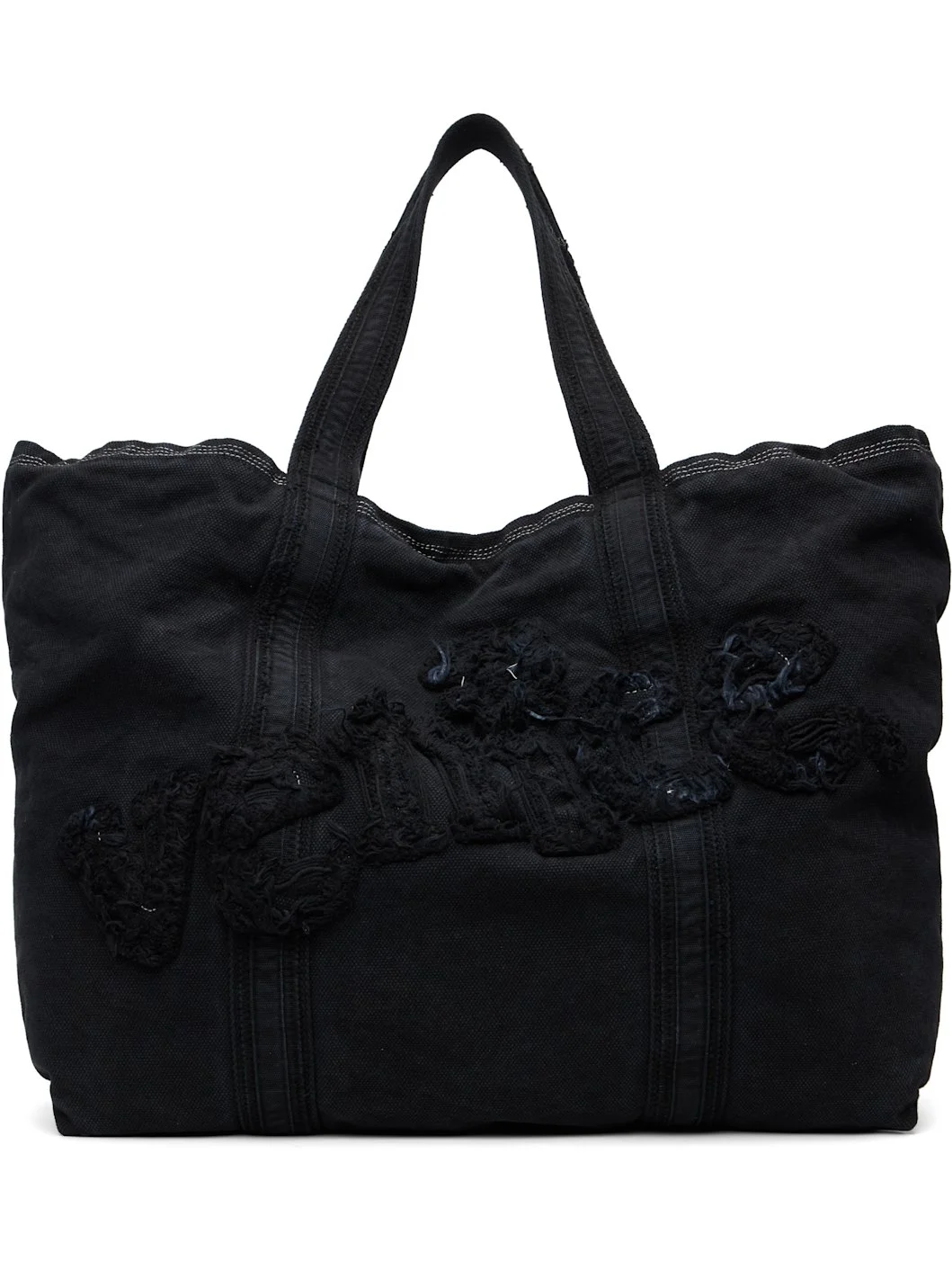 Cotton canvas tote. · Fading throughout · Fixed shoulder straps · Text applique with frayed edges at face · Patch pocket at interior · Contrast stitching in white · H14" x W19" x D11" Supplier color: Black Textile. Made in Tunisia 252260M172002