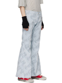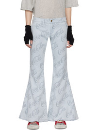 Flared stretch denim jeans. Jacquard logo pattern throughout. · Low-rise · Zip-fly · Logo-engraved antiqued copper-tone hardware Part of the ERL Coca-Cola® capsule collection. Supplier color: Grey coca cola 52% cotton, 46% polyester, 2% elastane. Made in Tunisia 241260M191009