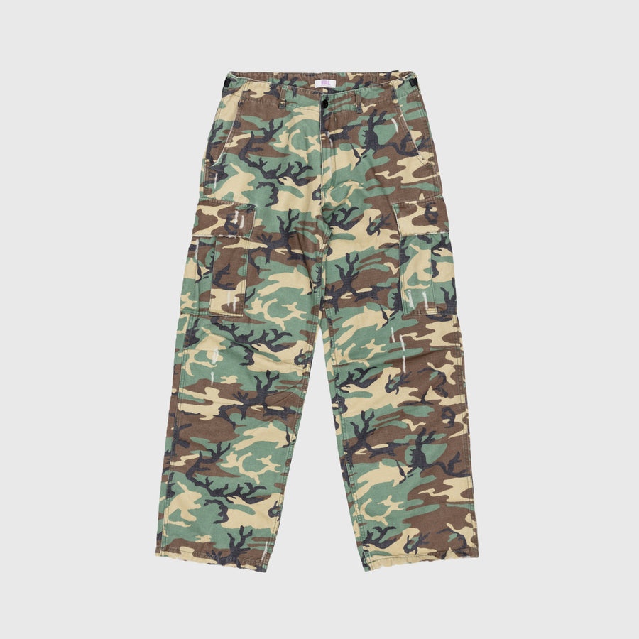 - ERL05P010-1 - Green - ERL is an American ready-to-wear brand designed by Eli Russell Linnetz in Venice Beach, California. With California's colorful and laid-back spirit rooted in its garments, the brand’s latest FW22 collection captures a unique and playful perspective on the future of American fashion. - 100% Cotton - Cotton canvas - Distressing throughout - Button closure with zip fly - Side seam hand pockets - Cargo pockets with flap and button closure - Two back pockets with flap and button closure - Fixed waistband with buckle adjusters - Wide leg - Made in Portugal