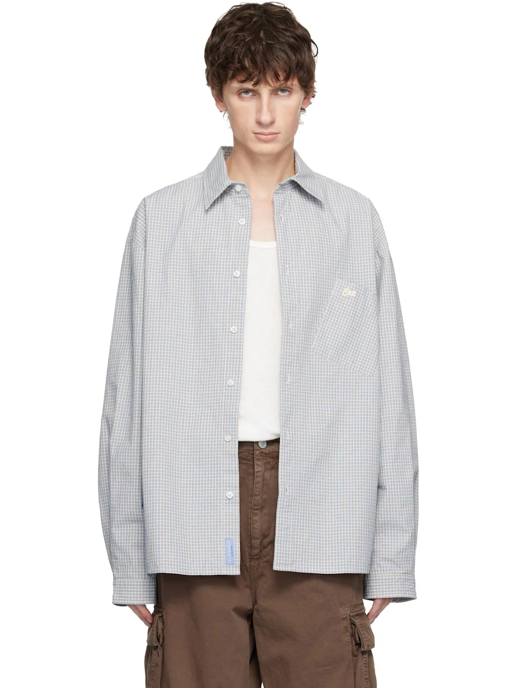 Cotton oxford cloth shirt. · Check pattern throughout · Spread collar · Logo patch at button closure · Logo patch and patch pocket at chest · Shirttail hem · Buttoned barrel cuffs · Box pleat at back yoke Supplier color: Beige/Blue 100% cotton. Made in Romania 252260M192023