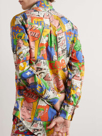 Inspired by the skate scene that surrounds ERL's Venice Beach studio, this statement shirt is boldly printed with comic strips. It's made from cotton and cut for a relaxed, subtly oversized fit. Team it with the coordinating trousers and tote. Size & Fit - Model wears a size larger to achieve a looser fit - Lightweight, non-stretchy fabric - Model is shown wearing a M - Model measures: chest 36"/ 92cm, height 6'1"/ 185cm Details & Care - Multicoloured cotton - Button fastenings - 100% cotton - Machine wash - Made in France