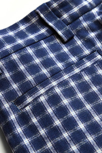 The ERL Check Pleated Tailored Pants in navy are relaxed-fit trousers crafted from cotton canvas featuring a jacquard check pattern, front pleats, a structured silhouette, and wide leg. Lined. DETAILS - Lightweight - Cotton canvas fabric - Jacquard check pattern - Relaxed fit - Front pleats - Belt loops - Zip fly closure - Four-pocket styling - Fully lined with cotton broadcloth Material: Cotton Made in Portugal Product codes: - SKU: ESSX/ERL/SS25/ERL10P038/Blue/S - UPC: 3607936240172