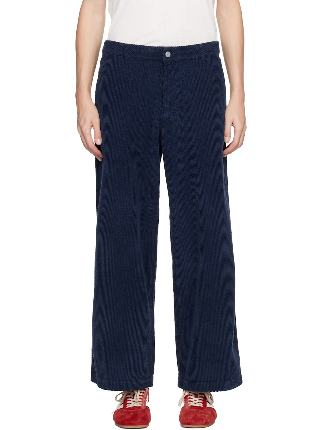 Cotton corduroy trousers. · Belt loops · Concealed drawstring at waistband · Four-pocket styling · Zip fly Supplier color: Navy 100% cotton. Made in Italy 252260M191011