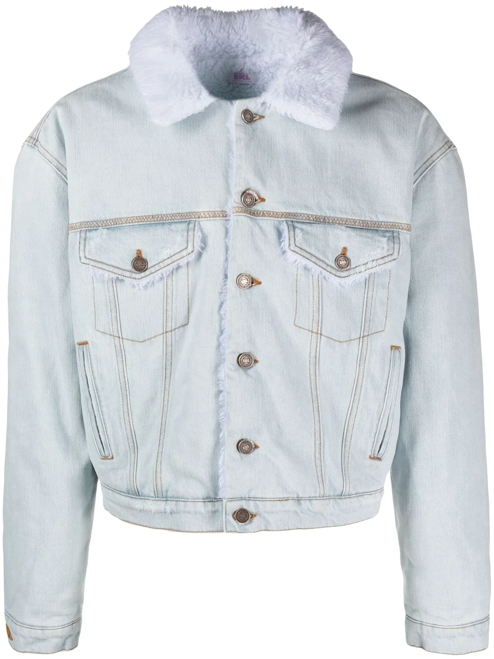 faux-fur collar denim jacket Highlights - Light blue - Cotton - Denim - Faux-fur collar - Front button fastening - Long sleeves - Two chest flap pockets - Two side inset pockets - Faux-fur lining Made in Italy Composition Outer: Cotton 100% Lining: Polyester 84%, Acrylic 16% Washing instructions Machine Wash