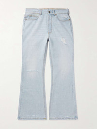 ERL's jeans riff on the skate and surf styles worn by the locals in Venice Beach. Cut in a retro flared shape, they're made from denim and distressed to create an authentically lived-in look. Team yours with one of the brand's flannel shirts. Size & Fit - Model wears a size larger to achieve a looser fit - Flared leg, mid-rise style - Mid-weight, non-stretchy fabric - Model is shown wearing a M - Model measures: waist size 30, height 6'1"/ 185cm Details & Care - Light-blue denim - Button and zip fastening - 100% cotton - Machine wash - Made in Italy