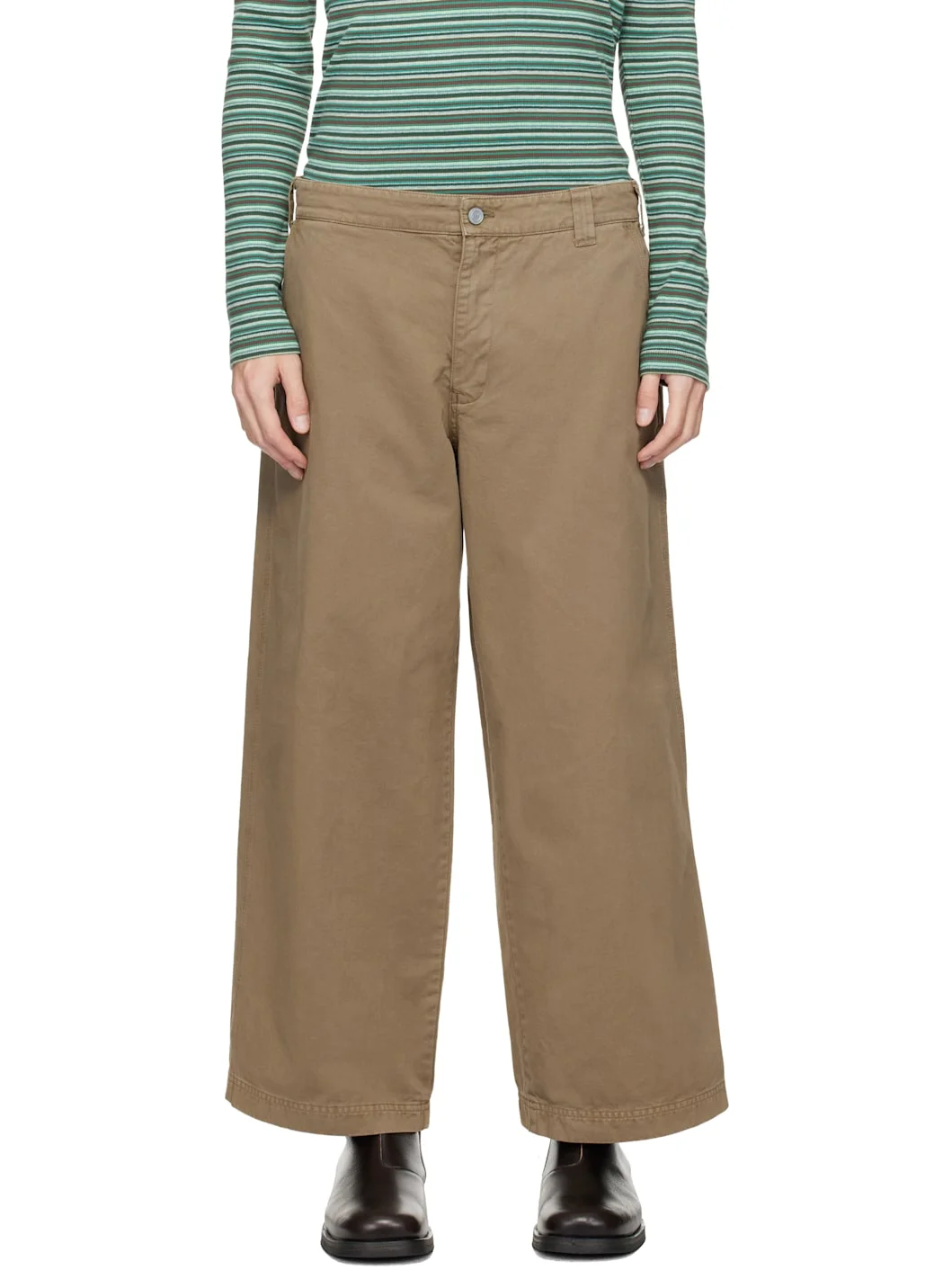 Cotton- and recycled cotton-blend twill trousers. · Concealed drawstring at waistband · Belt loops · Four-pocket styling · Zip fly · Embroidered logo patch at back waistband Supplier color: Taupe 80% cotton, 20% recycled cotton. Made in Romania 252260M191012