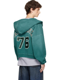 French terry hoodie. · Fading throughout · Zip closure · Logo embroidered at chest · Boucle text applique at chest · Patch pockets at front · Rib-knit hem and cuffs · Dropped shoulders · Satin text appliques at back Supplier color: Green 100% cotton. Made in Turkey 252260M202003