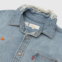 - ERL07B201-1 - Light Blue - 100% Cotton - ERL introduces the first collaborative capsule withLevi’s® - Front button closure - Front chest pocket - Logo embroidery on the chest - Distressed collar detailing - Adjustable button cuffs - Curved hem - Relaxed fit