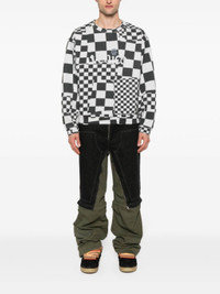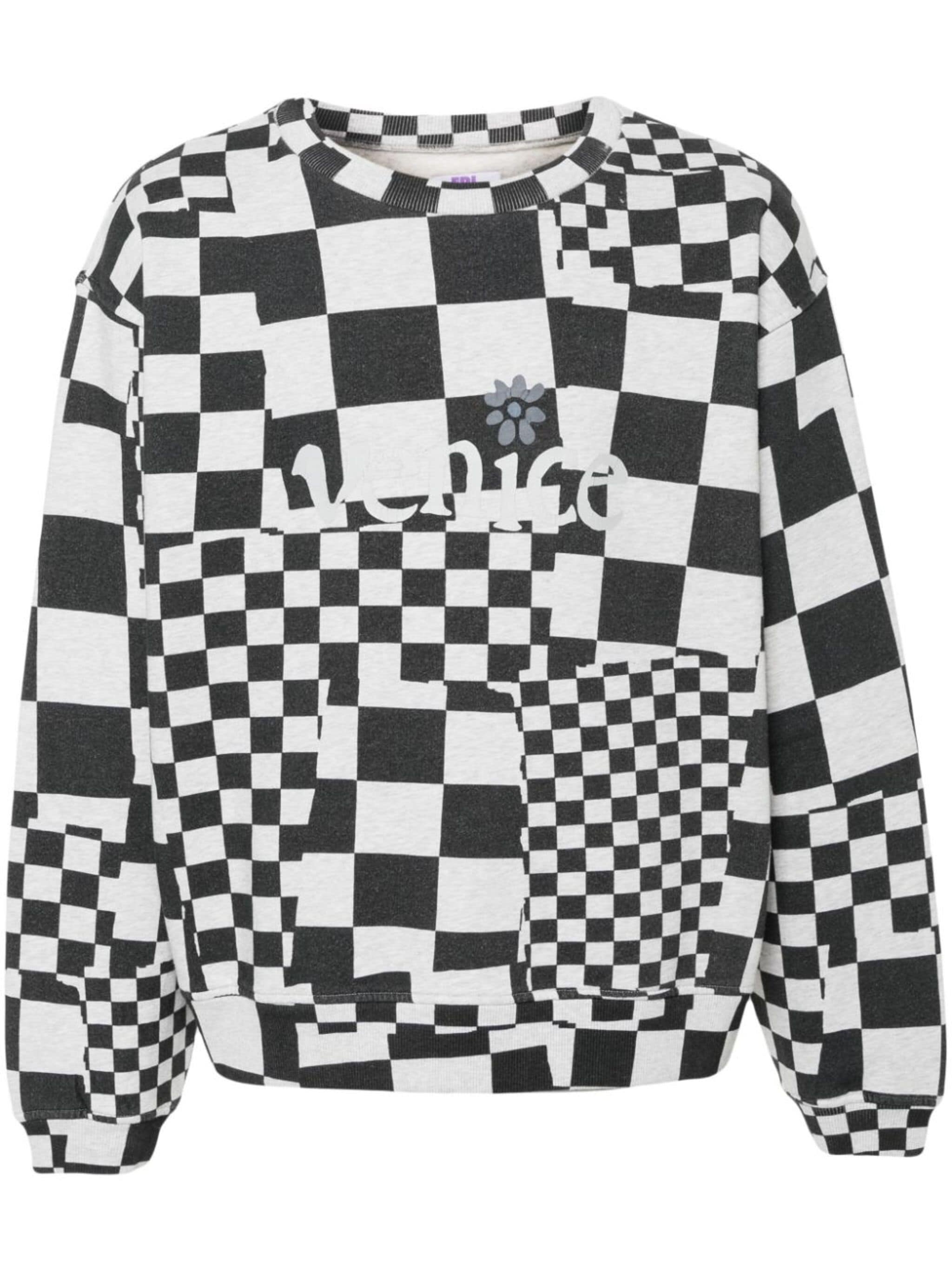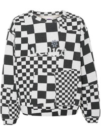 black/grey cotton soft jersey checkerboard print crew neck drop shoulder long sleeves ribbed cuffs and hem logo print at the chest internal logo tag fleece lining straight hem Size & Fit Model Measurements: Height: 1.86 m Bust/Chest: 86.0 cm Hips: 96.0 cm Waist: 80.0 cm Model wears size M Fabric and Care Designer Style ID: ERL08T023 Designer Colour: BLACK GREY Composition: Cotton 100% Washing instructions: Machine Wash Made in Turkey